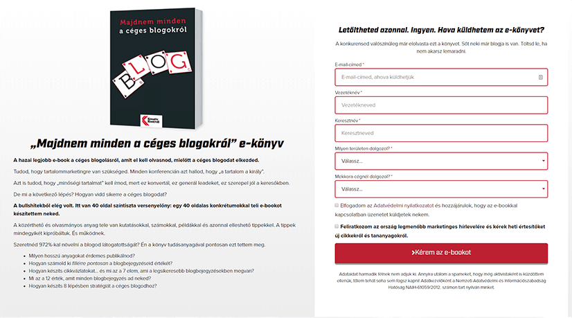 Az emberek meglátják a letöltés gombot és örülnek, hogy nem kell e-mail címet megadniuk. Ha viszont rákattintanak, nem indul el egyből a letöltés, hanem egy felugró ablakban, pop-up-ban vagy egy külön oldalon kell befejezniük a letöltést, ahol már meg kell adniuk az adataikat.
