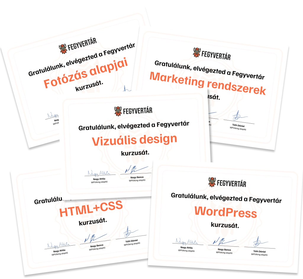 A kurzusaink kvízekkel zárulnak, és ha sikeresen teljesíted őket, digitális oklevelet kapsz.