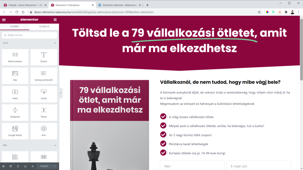 Szóval az Elementor az oldalépítő, viszont nagy különbség van az ingyenes és a fizetős Elementor között.