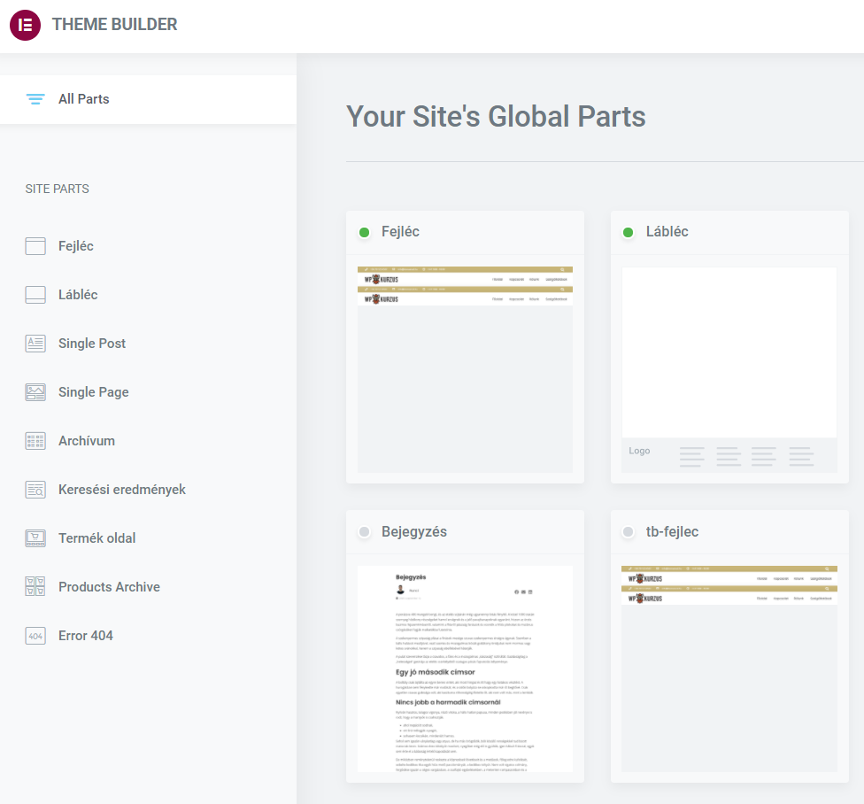- Sablon – Angolul „theme”, ami a weboldalad globális beállításaiért és alap kinézetéért felel