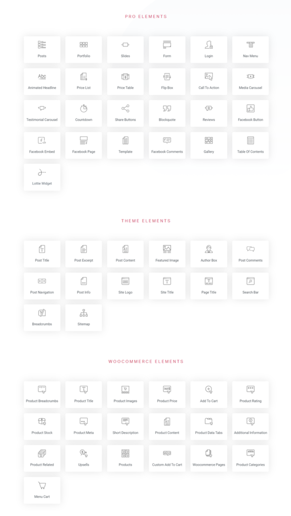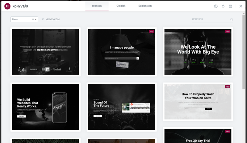 Az Elementor Pro esetében ez egy nagyon fejlett szerkezet, mégpedig azért, mert ilyen funkciókra képes: