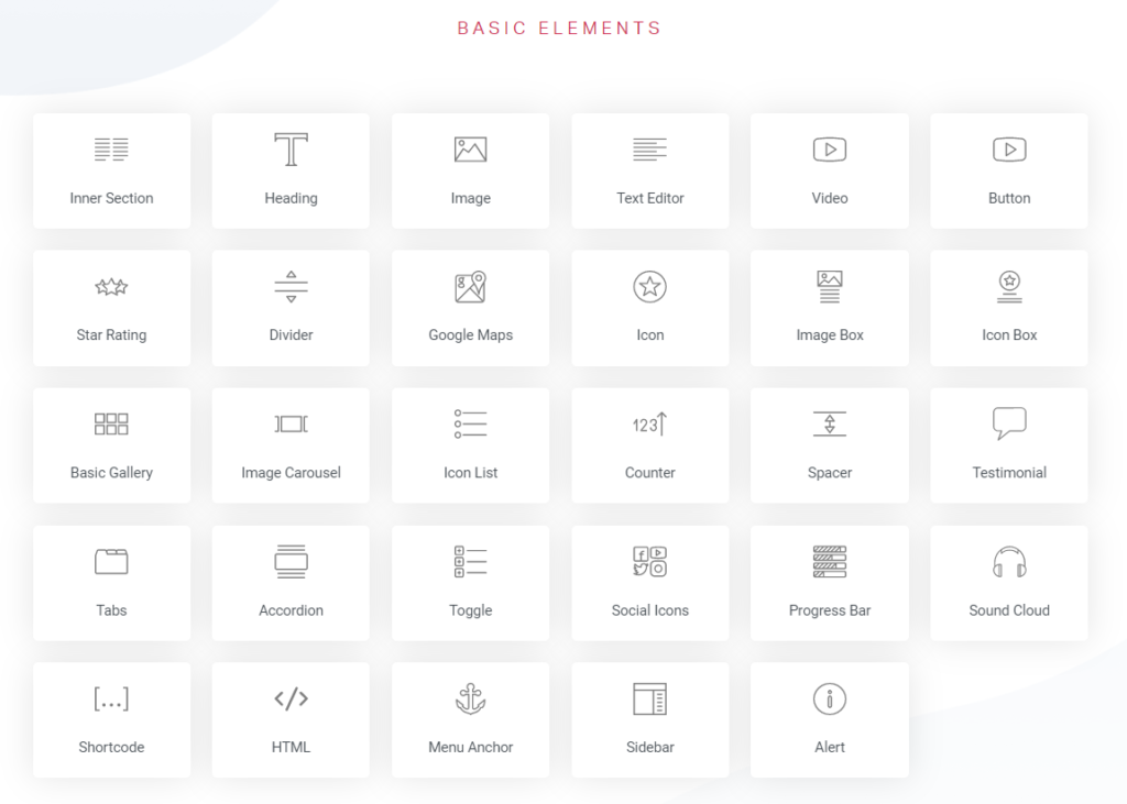 Vannak viszont olyan elemek (az Elementor „widgetként” hívja őket), amelyek bonyolultabbak, ritkábban kellenek, összetettebbek, azért, hogy neked segítség a munkád.