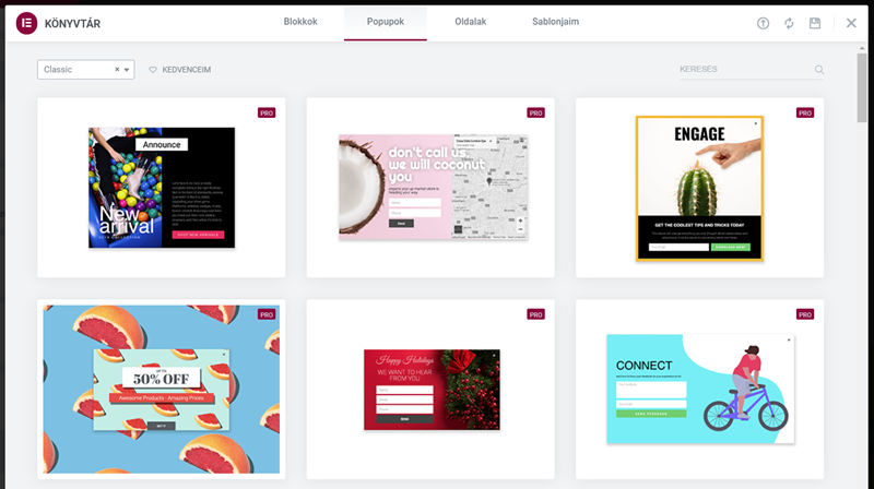 Az Elementor Pro viszont egy meglepően profi Popup építőt készített, amivel nem csak felugró ablakokat, hanem különböző oldalról beúszó ablakokat, sávokat is készíthetsz.