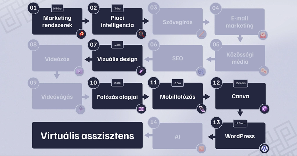 A Virtuális asszisztens Karrier Küldetés abban támogat, hogy te lehess ez a megbízható háttérember. Megtanítjuk azokat a skilleket, amelyekre építve egy sikeres karriert építhetsz fel. Ennek első alapkövét a kurzussal ki is pipálod.