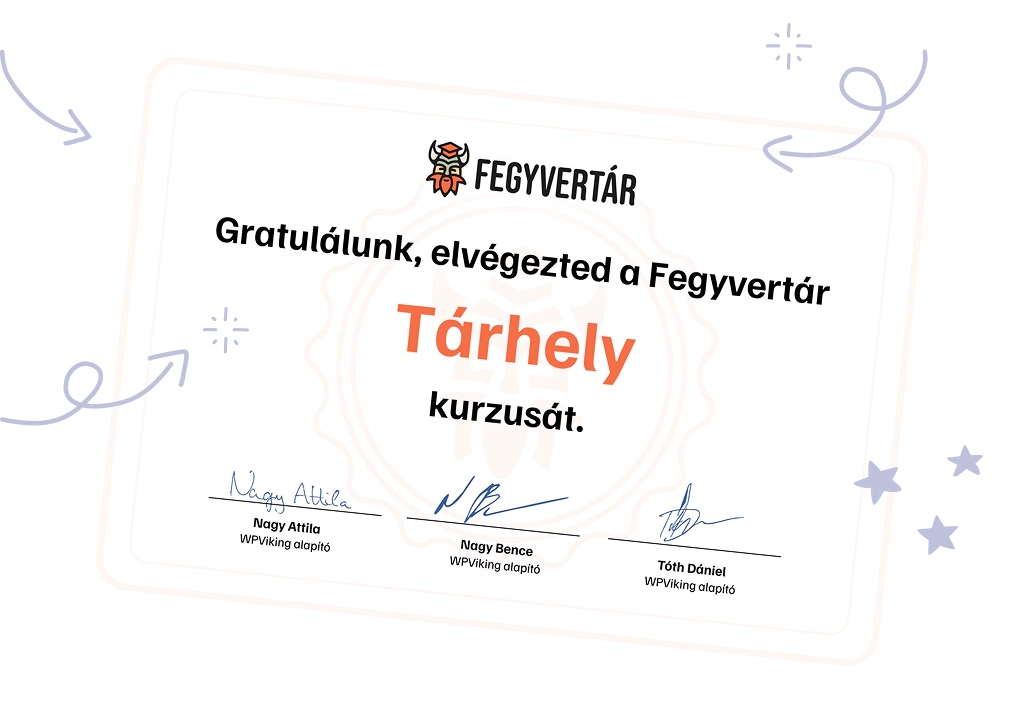 Ha technikai vagy haladással kapcsolatos kérdésed van, ezen az oldalon tudsz nekünk írni: wpkurzus.hu/fegyvertar-kapcsolat