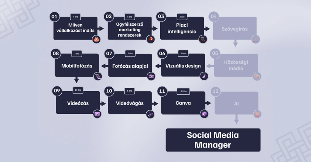 Ma már rengeteg helyen alapkövetelmény, hogy videót vágj – erre építünk tovább. Ha Social Media Manager pályára lépnél, akkor meg pláne. Ezen kívül viszont van még pár ismeret, amit magadra kell szedned.