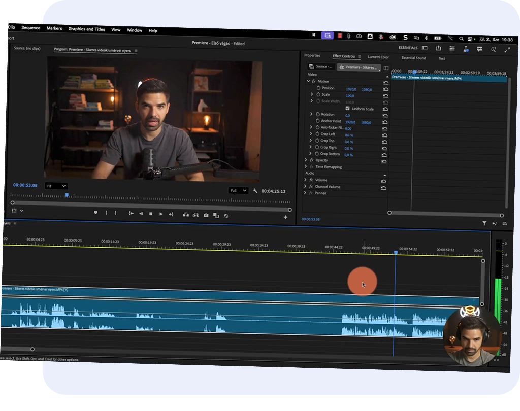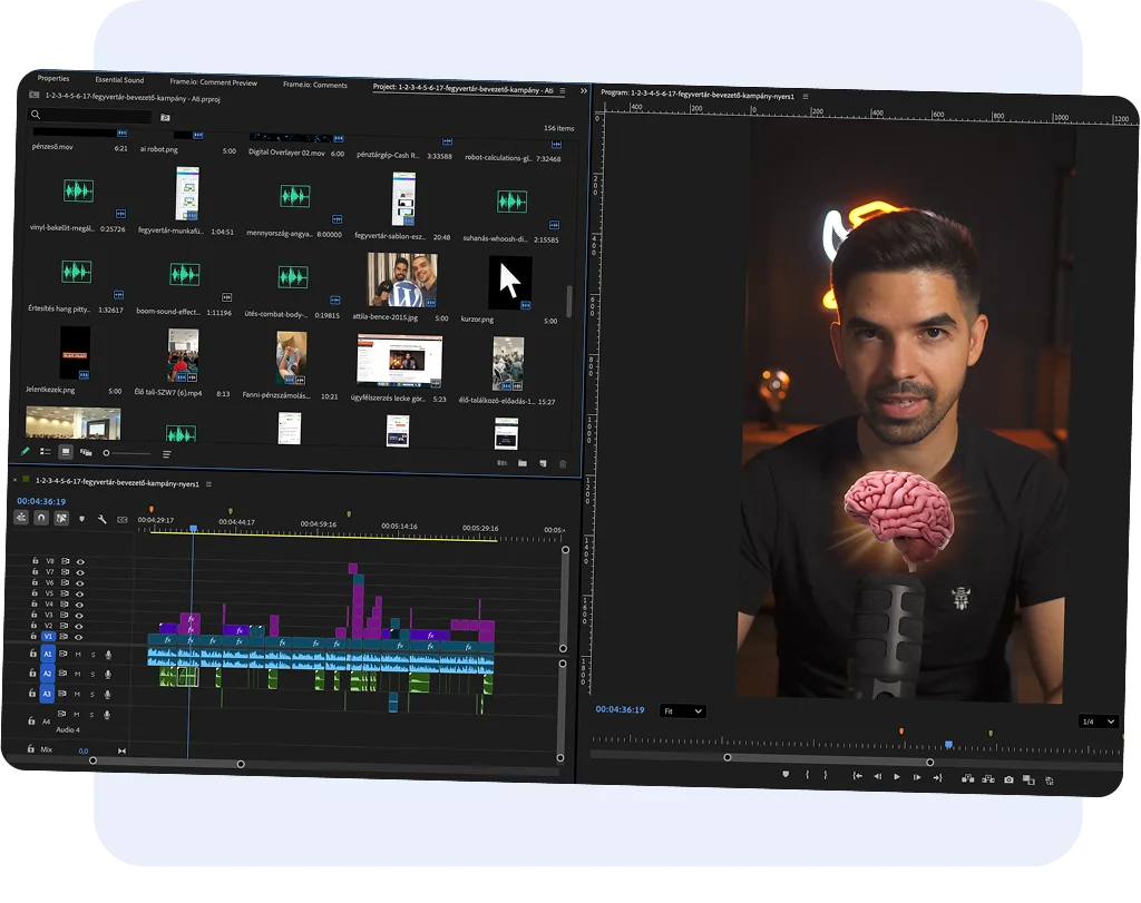 Megtanulod, hogyan szervezd és menedzseld a teljes vágási folyamatot — az anyagok rendszerezésétől a kész videó exportálásáig. Ez lehetővé teszi, hogy gyorsan, strukturáltan és hibamentesen dolgozz akár ügyfelek anyagain is, növelve ezzel a hatékonyságodat és a bevételedet.