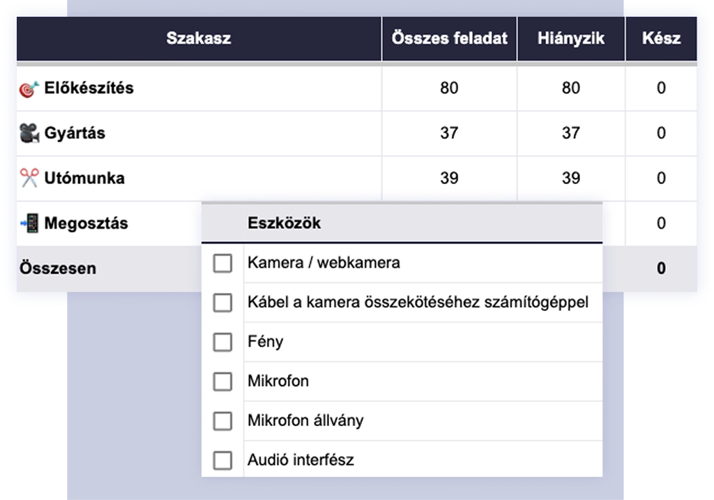 Igen. Úgy építettük fel, hogy a meglévő telefonoddal is el tudj indulni. Adunk belépő szintű felszerelés-ajánlót és egy részletes technikai eszközlistát, így később lépésről lépésre tudsz fejleszteni, ahogy haladsz. Induláskor elég a mobilod és egy olcsó csíptetős mikrofon.