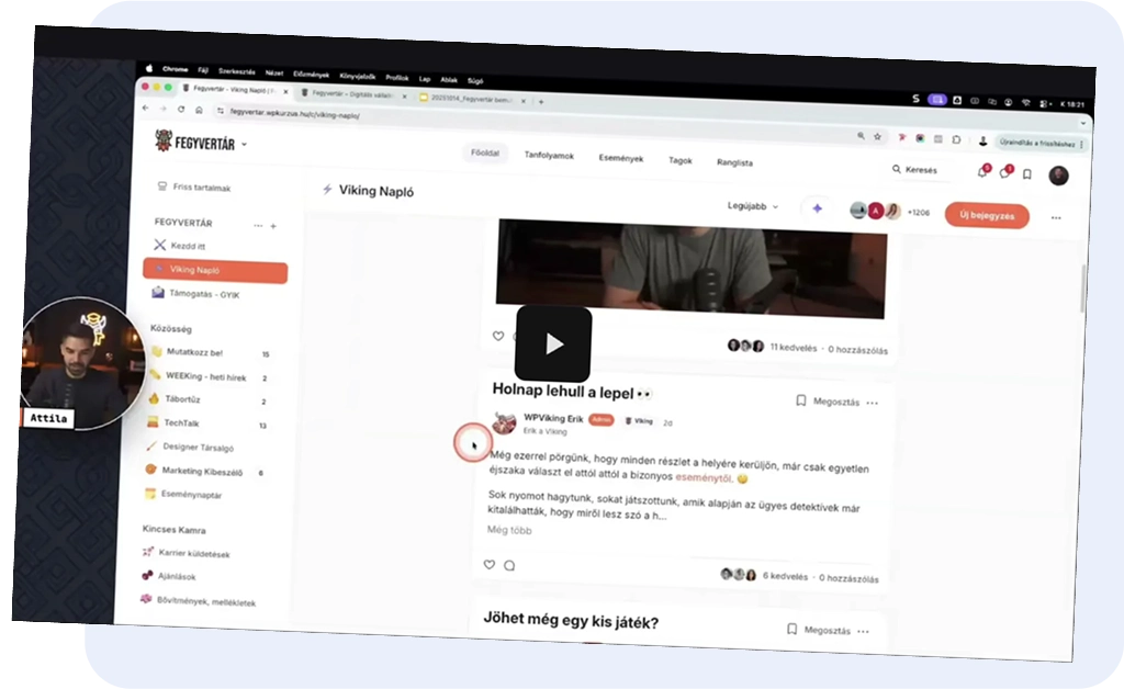 Lehetőséged lesz csatlakozni a Fegyvertár közösségi felületéhez, ahol kérdezhetsz a kurzussal kapcsolatban és megoszthatod a saját projektjeidet.