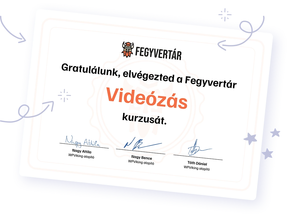 A Videózás kurzus magában nem vásárolható meg, viszont rendkívül kedvezően elérheted Fegyvertár tagsággal.