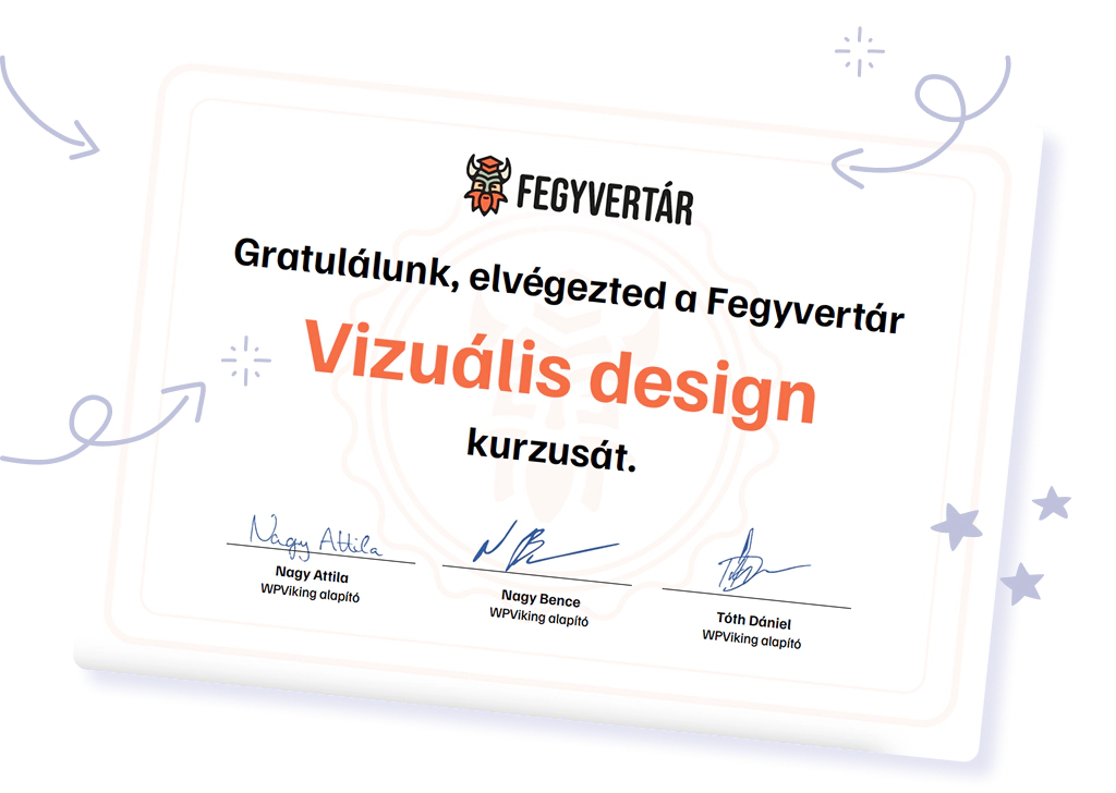 A kurzus végén a kvízek sikeres teljesítésével kapsz egy digitális oklevelet, amely igazolja a fejlődésedet. Ez nem egy üres papír, hanem kézzelfogható bizonyíték arra, hogy mostantól tudatosan gondolkodsz vizuálisan. Bátran kiteheted a portfóliódba vagy feltöltheted a LinkedInre. Ennél is fontosabb azonban, hogy egy olyan örökérvényű tudást tudhatsz magadénak, mely minden munkádnál előkerül majd.