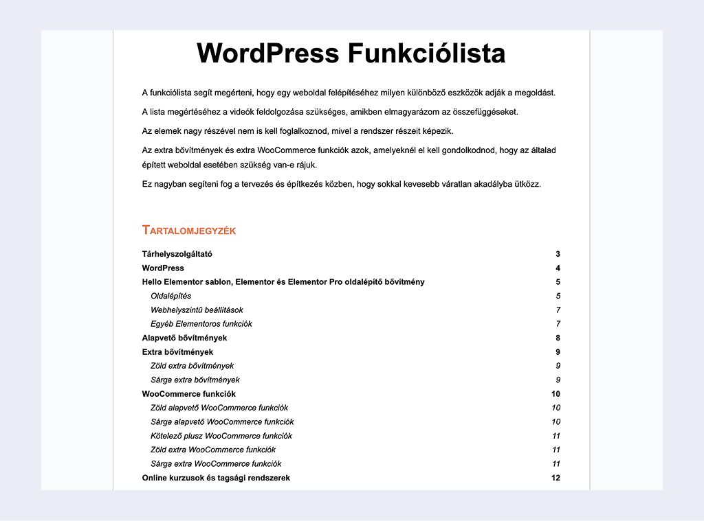 Egy áttekintő dokumentum a legfontosabb beállításokról, bővítményekről és funkciókról.